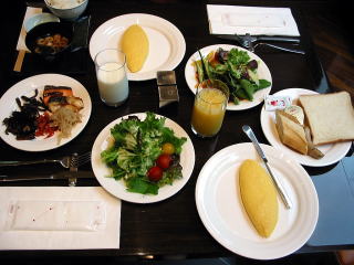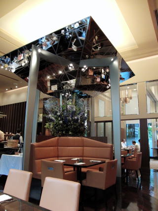 天井の高いレストランでの朝食