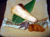 お正月らしく、黒豆や松風焼きの前菜でした。