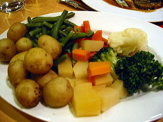 茹で野菜がたくさんテーブルに運ばれて