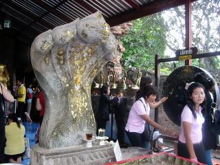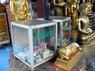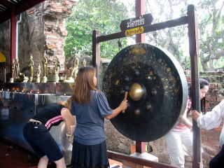 アユタヤでは、お布施を払って金箔を買いそれを仏像などに張り付けてお参りする様子を見ました。