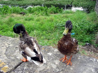 川で遊ぶ白鳥や鴨に引き寄せられながらコイン川に架かる橋を渡ります。
