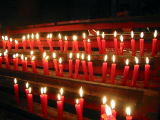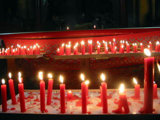 お堂を巡ってろうそくに火をつけてお供えします。