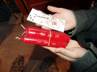 最後のろうそくを福建会館にお供えして唐人屋敷に別れを告げます。