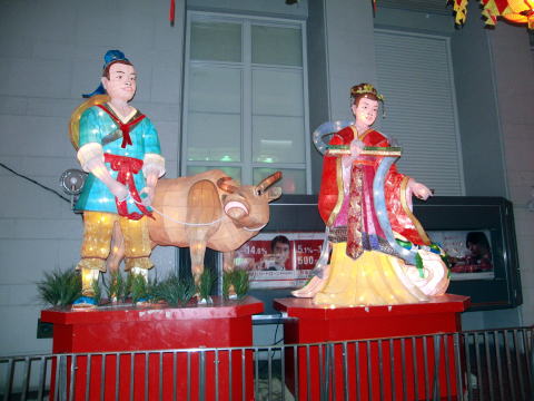織り姫と彦星の前ではカップルが記念写真を撮る姿が見られました。