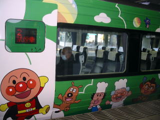 岡山から南国3号のアンパンマン車両に乗り換え高知へ向かいます。