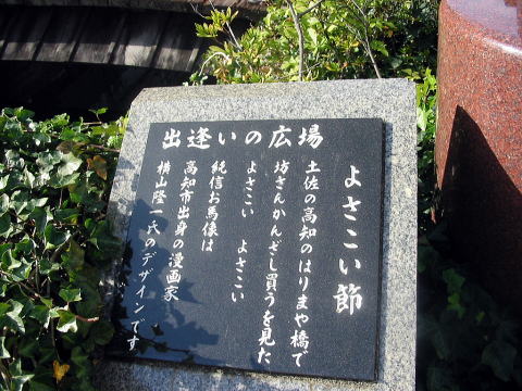はりまや橋の周辺は出逢いの広場として整備されていて、そこに「よさこい節」の歌碑があります。