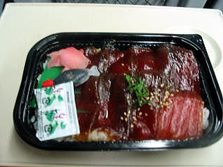 キヨスクで買った、づけ弁当と磯てん、鰹ご飯のおむすびでした。
