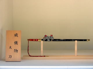 太刀や盾などです。盾の黒と朱のコントラストが印象的でした。