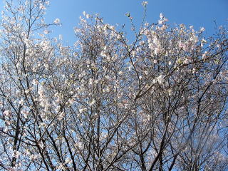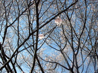 本丸跡広場では「十月桜」という秋咲きの桜が秋晴れの青空をバックに美しく咲いていました。