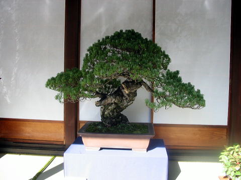 「五葉松」樹齢450年樹高125㎝の大きな盆栽です。枝幹が左右大きく開いた形の
