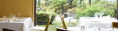 ホテルの庭が見えるレストランセリーナでヘルシーなせいろ蒸しメニューの夕食を食べ