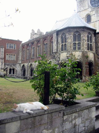 お庭から教会出口付近の