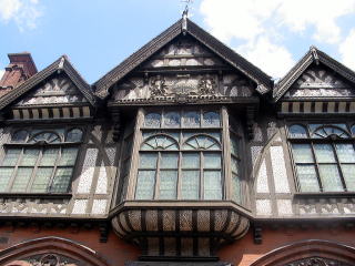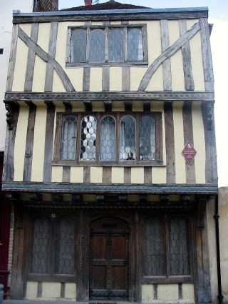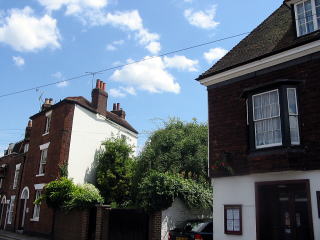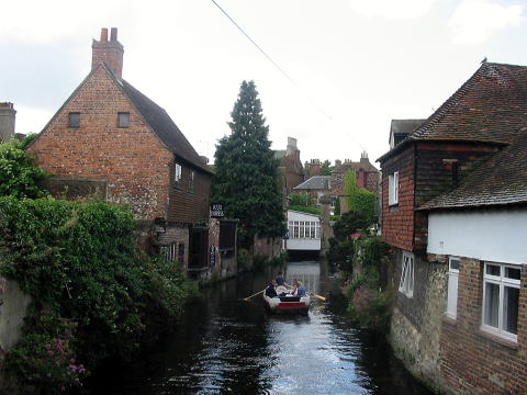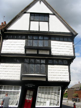 カンタベリーでは、テューダー様式(黒い木組みと白い壁が特徴)の家がよく見られ
