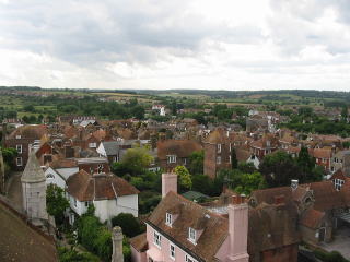 可愛い街並みの向こうにセントメアリー教会が見えます。