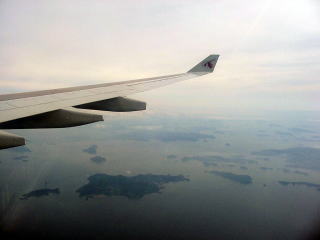 翼の下に瀬戸内海の島々が見えてきて、「日本は美しい国だな〜!]と思いました。