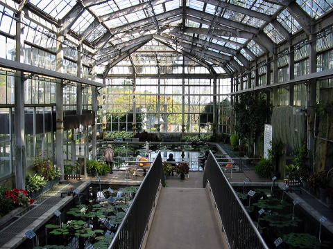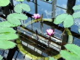 温室の池には睡蓮が咲いています。夏になると子どもが乗れるほどのオオニバスを楽しめるそうです。