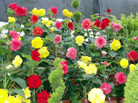 早速、温室に入ってベコニアを見ます。とても色美しい花々なのですが
