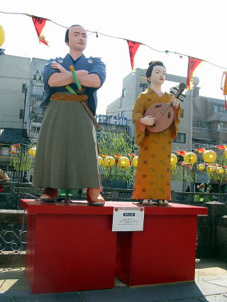 眼鏡橋の川沿いには龍馬とおりょうさんのモニュメントもありました。
