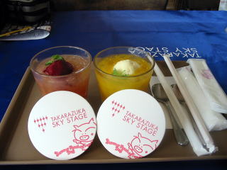 幕間に関西で、よく飲まれるミックスジュースで一息・この日は曇り空でした。
